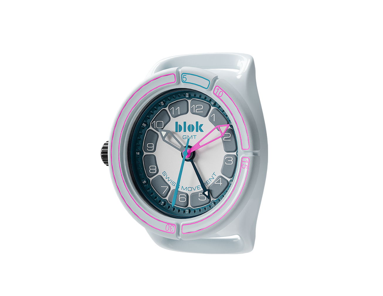 The Blok 38 features our unique analog time management system. A rotating bezel carries 4 simple time “bloks” that allow a clear visual understanding of time passing.